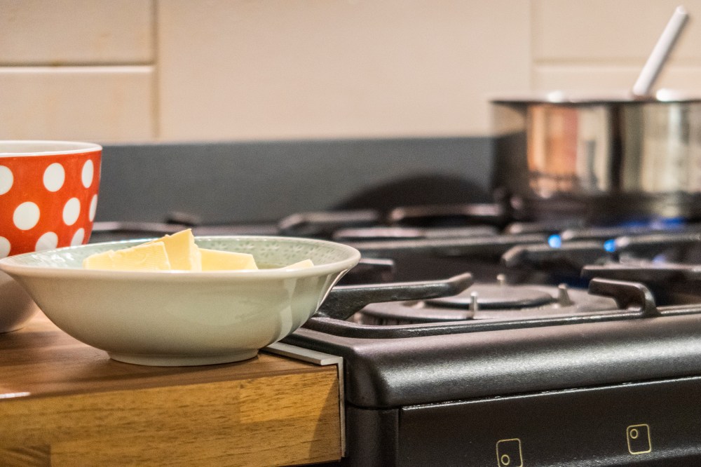 Unter Rühren bei mittlerer Hitze erwärmen und Butter nach und nach hinzugeben. Wenn die Butter gut geschmolzen ist, den Topf vom Herd nehmen und die Eier hinzufügen. Den Topf zurück auf den Herd und bei schwacher Hitze rühren, bis die Masse dickflüssig wird (fast puddinghaft) . Hier ist es wirklich wichtig, die Temperatur nicht zu hoch zu schalten, da sonst das Eiweiß ausflockt.