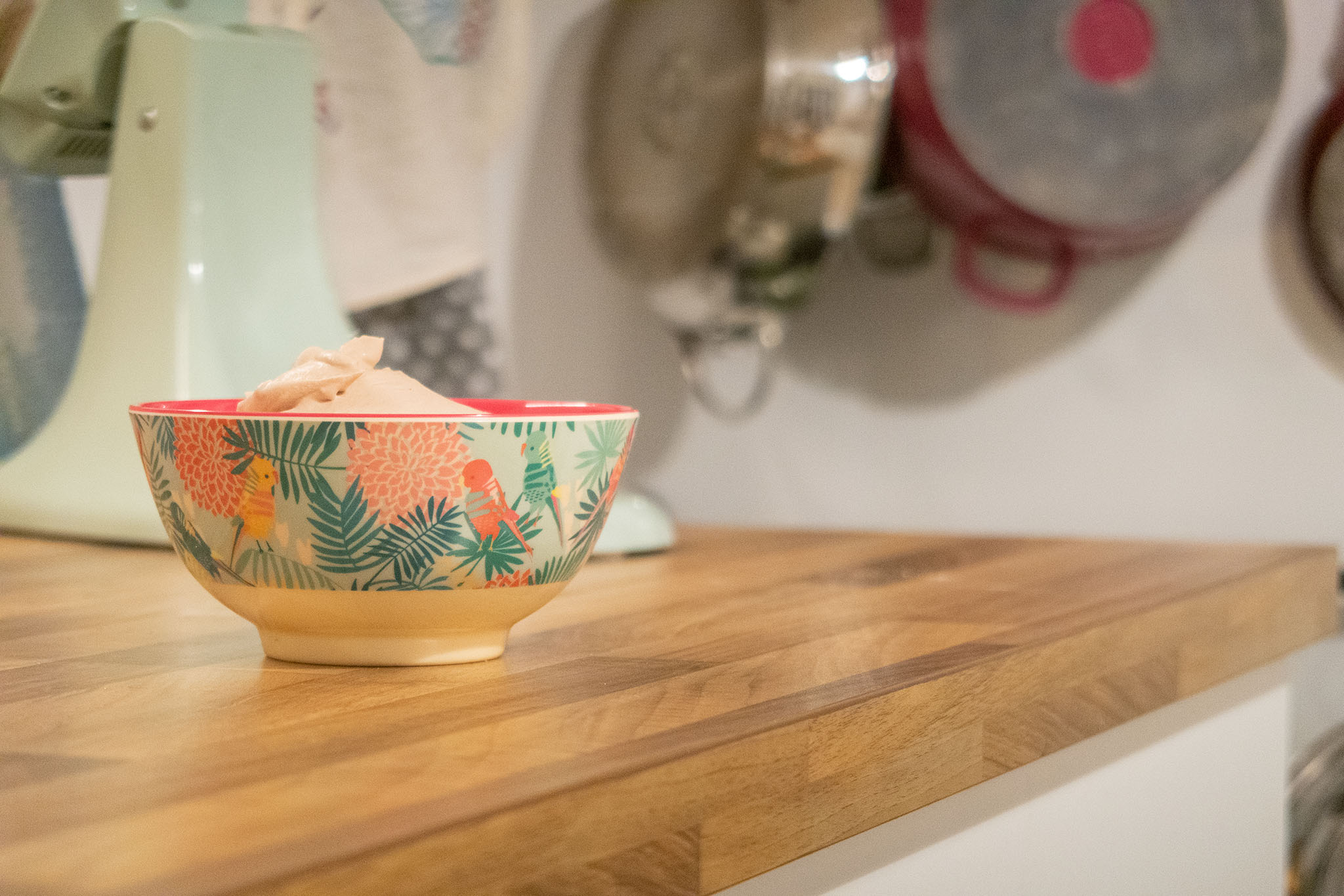 Wir fangen mit dem Topping an, denn dieses darf noch im Kühlschrank etwas vorkühlen. Gebt zunächst die Sahne mit dem Sahnesteif und dem Getreidezucker in eine Schüssel und schlagt diese fast steif (wenn ihr diese Reihenfolge einhaltet, dann wird eure Creme nicht ganz so flüssig, wie bei mir und läuft euch auch nicht davon). Dann gebt ihr die Mascarpone und die Nuss-Nougat-Creme dazu und schlagt alles noch einmal (nicht zu lange) zu einer festen Creme. Und ab damit in den Kühlschrank.