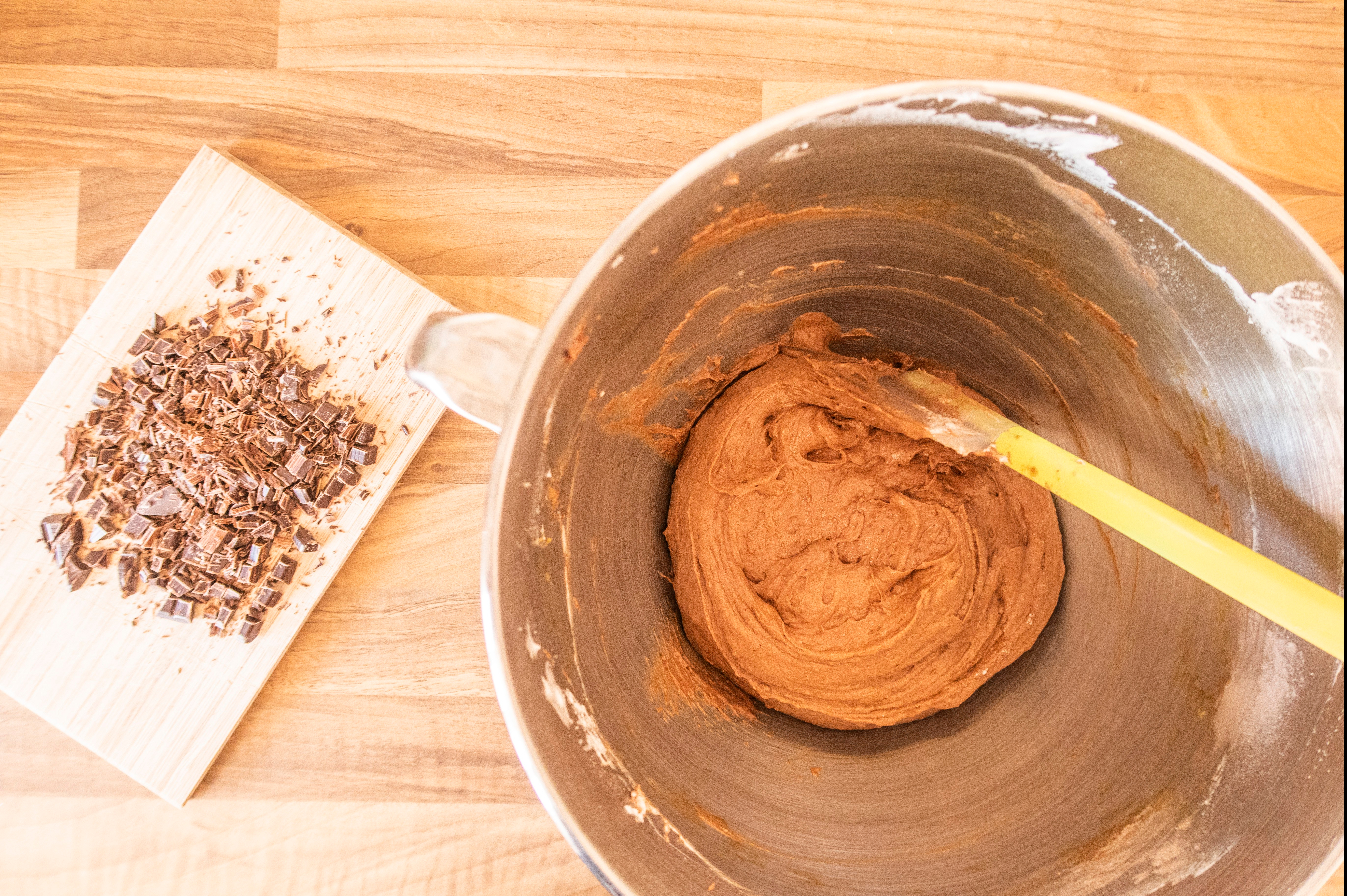 Mischt das Mehl, das Backpulver und den Kakao zusammen. Nun kommt zusammen, was zusammen gehört: Vermengt abwechselnd die Buttermasse mit der Mehlmischung, der Milch und dem Eiweiß. Benutzt dazu am besten einen Küchenspachtel und immer schön vorsichtig unterrühren, damit euch nicht die ganze Luft aus dem Eiweiß verloren geht.