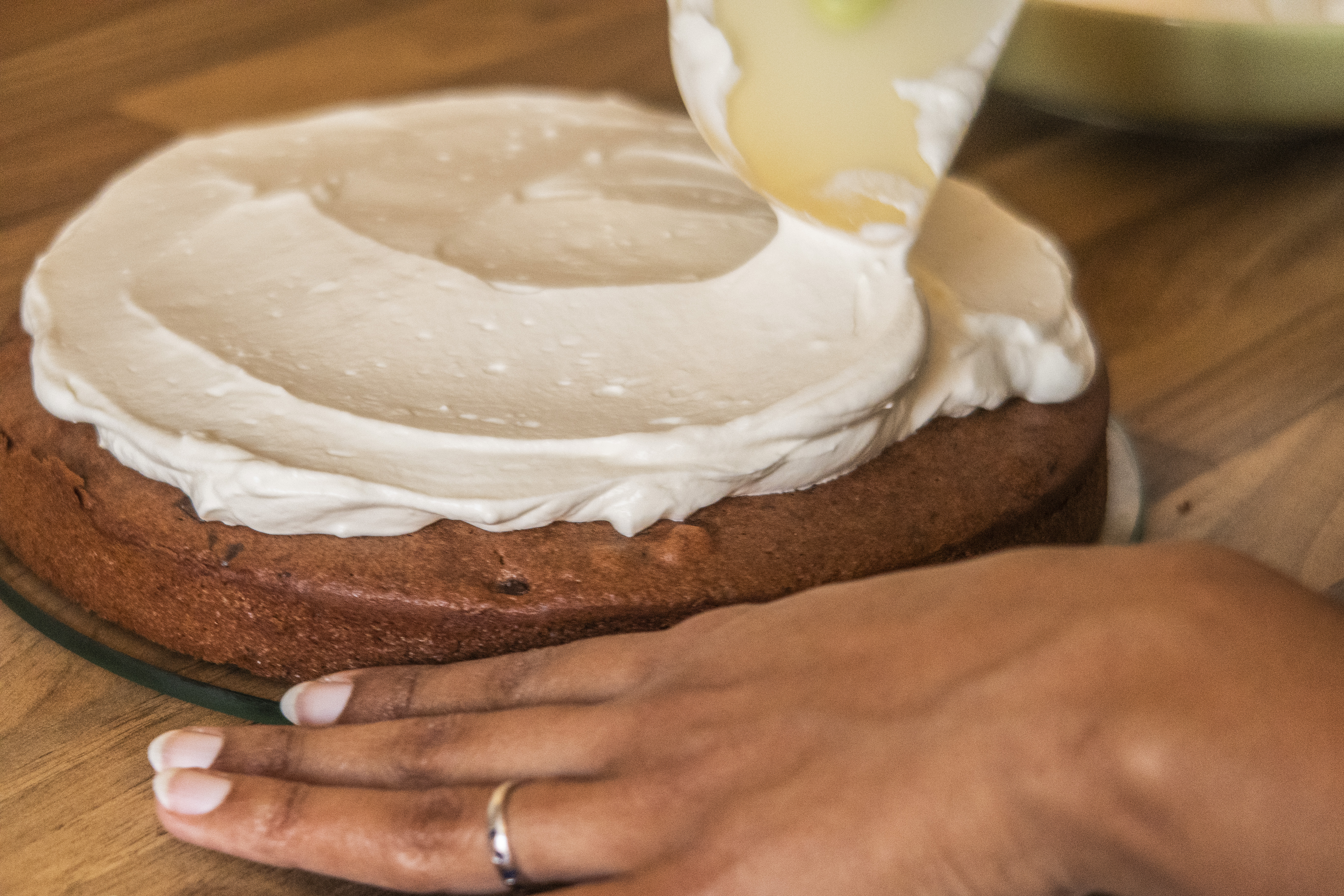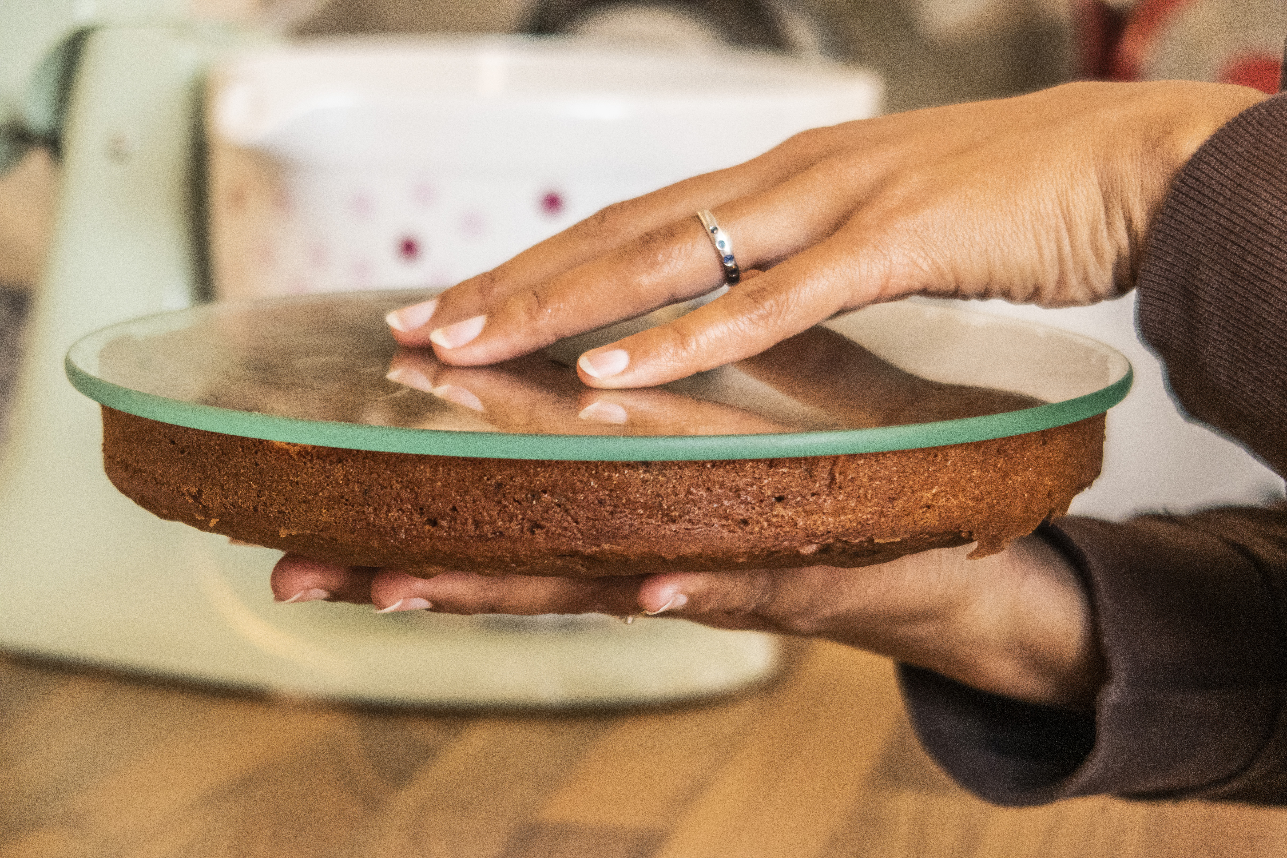 Wenn euer Kuchenteig durchgebacken ist (am besten eine Garprobe machen: nehmt einen Holzspieß und piekt in die Mitte eures Kuchen – es sollte kein flüsssiger Teig mehr dran kleben bleiben), nehmt ihr in aus dem Ofen und lasst ihn komplett auskühlen.