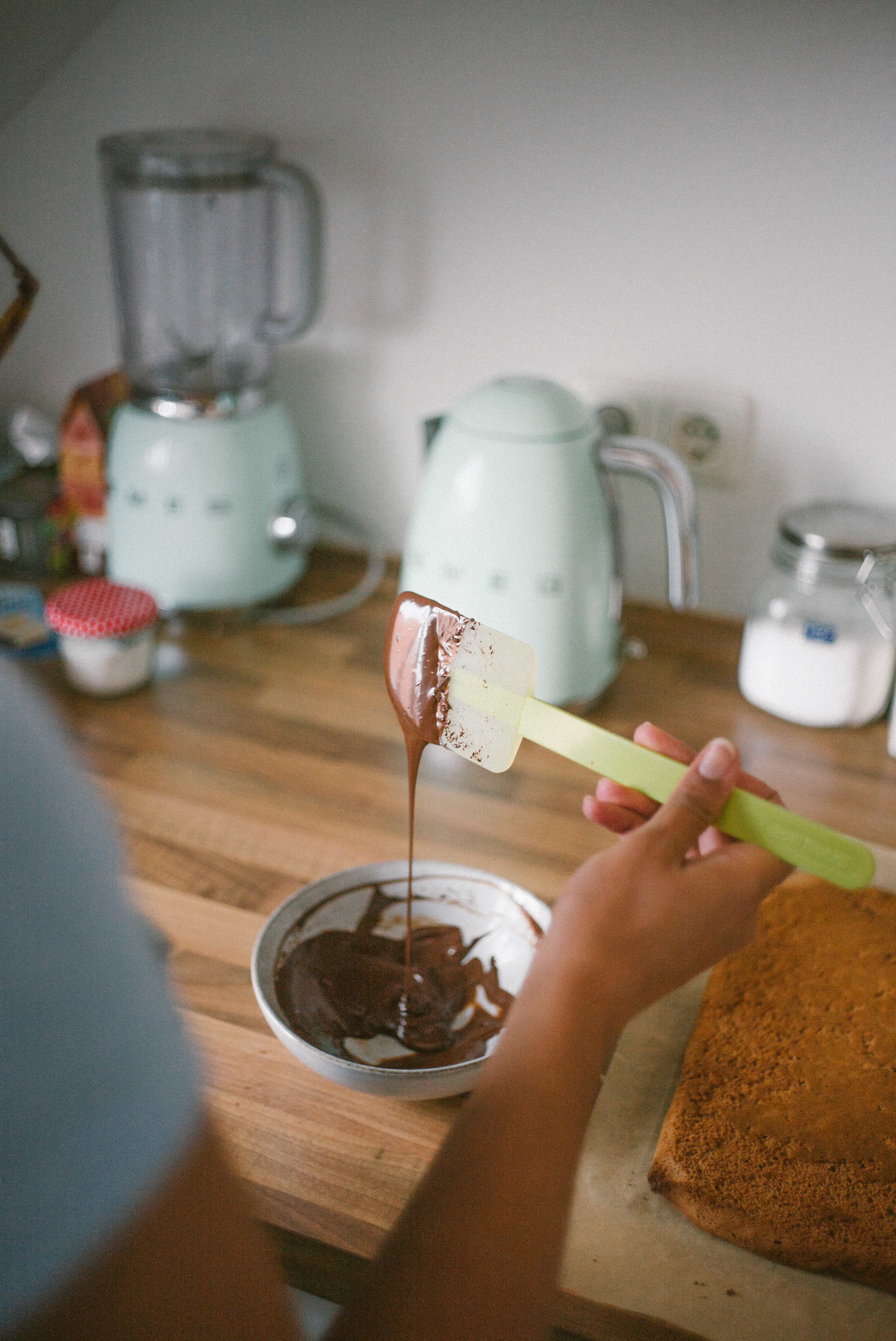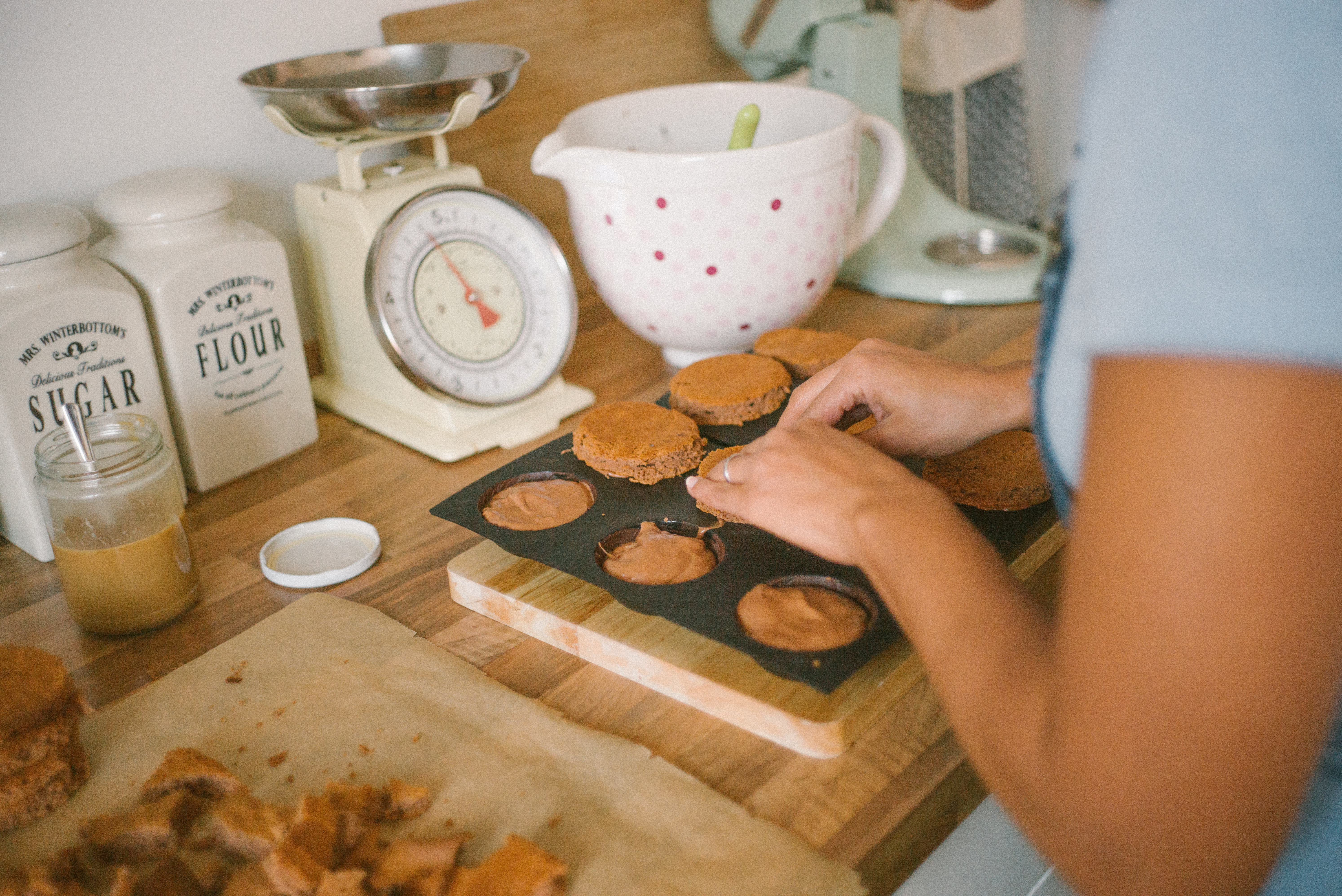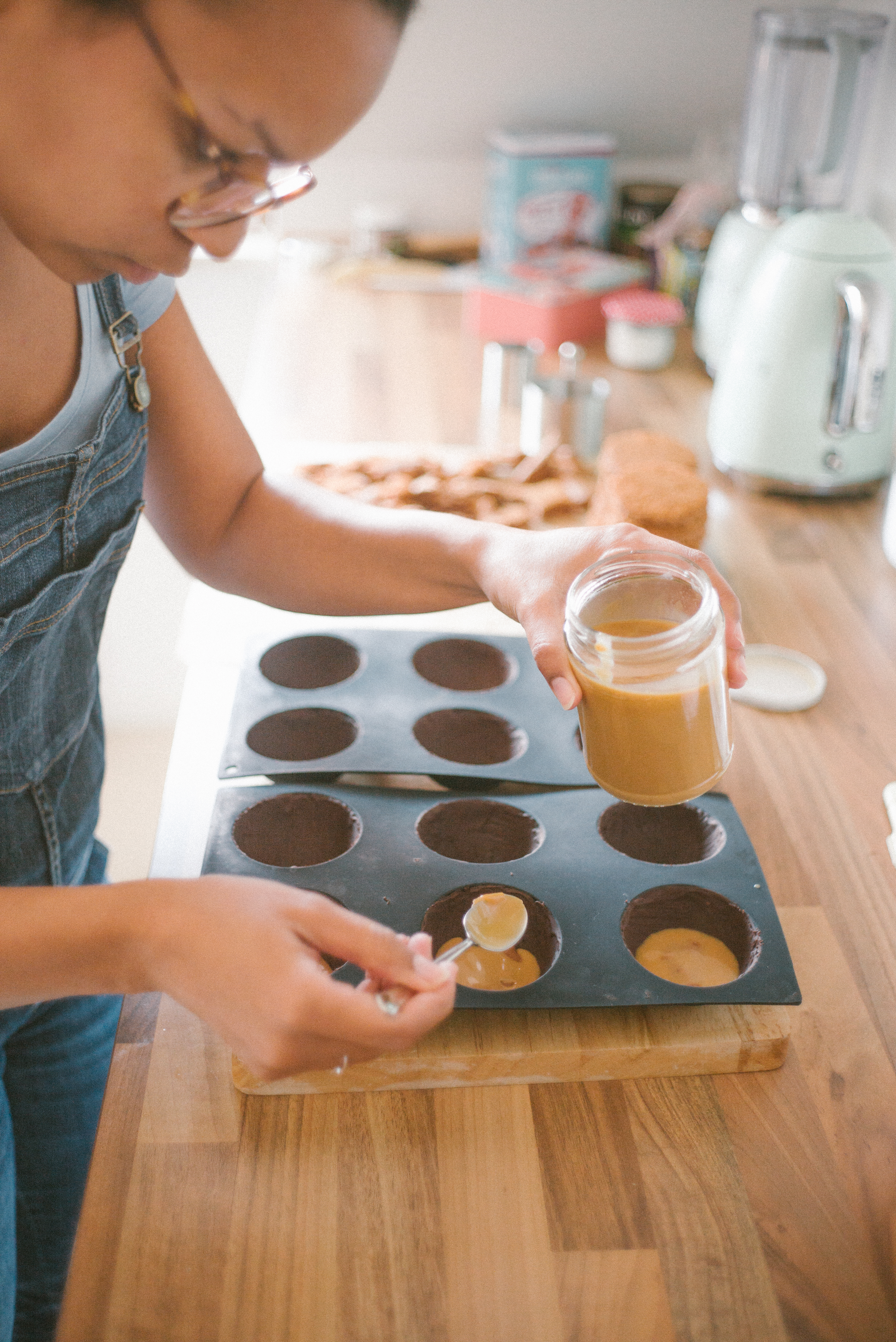 Dieses mal hatte ich die Ehre, dass wir Besuch von einem lieben Freund aus Valencia hatten und er mir vorgeschlagen hat, dass er gerne Fotos von mir beim Backen machen kann. Da konnte ich natürlich nicht nein sagen! Da er auch schon super tolle Bilder von unseren Hochzeitstorten geschossen hatte, wusste ich, was mich bei ihm erwartet. Und damit sich das auch gleich richtig lohnt, habe ich mir auch ein besonderes Rezept ausgedacht: Kuppeltörtchen mit einer Schokomousse, Karamell und Schokoladenbiskuit, umhüllt von Zartbitterschokolade.