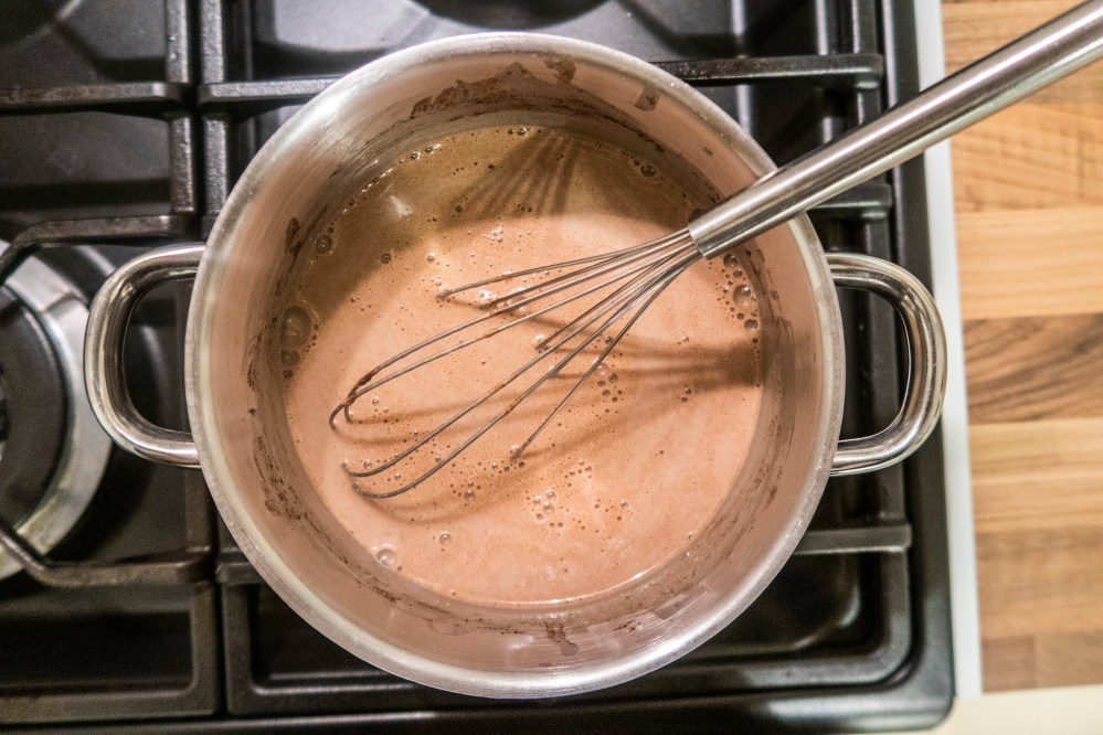 Nun heißt es abkühlen lassen: erst auf Zimmertemperatur und dann im Kühlschrank bis sie kalt ist. Wenn sie kalt genug ist, könnt ihr die Masse natürlich auch raus stellen und dort abkühlen lassen. Ein Hoch auf den Winter!