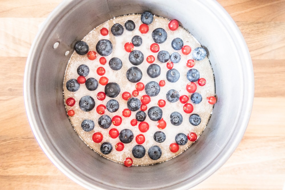 Durch den Getreidezucker im Boden werden die Beeren gleich ein wenig karamellisiert. Damit kann der Kuchen schon nur noch spitze werden – wer hat schon etwas gegen Karamell?